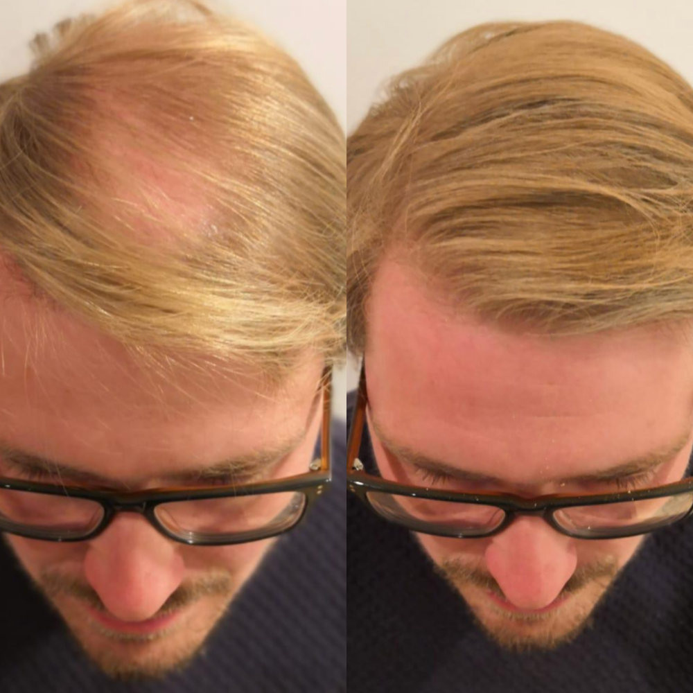 Resultados reales tras usar nuestro Serum Roll-On para el crecimiento del cabello. Los resultados individuales pueden variar, ya que el cabello y el cuero cabelludo de cada persona son únicos y pueden reaccionar de manera distinta a nuestra fórmula.